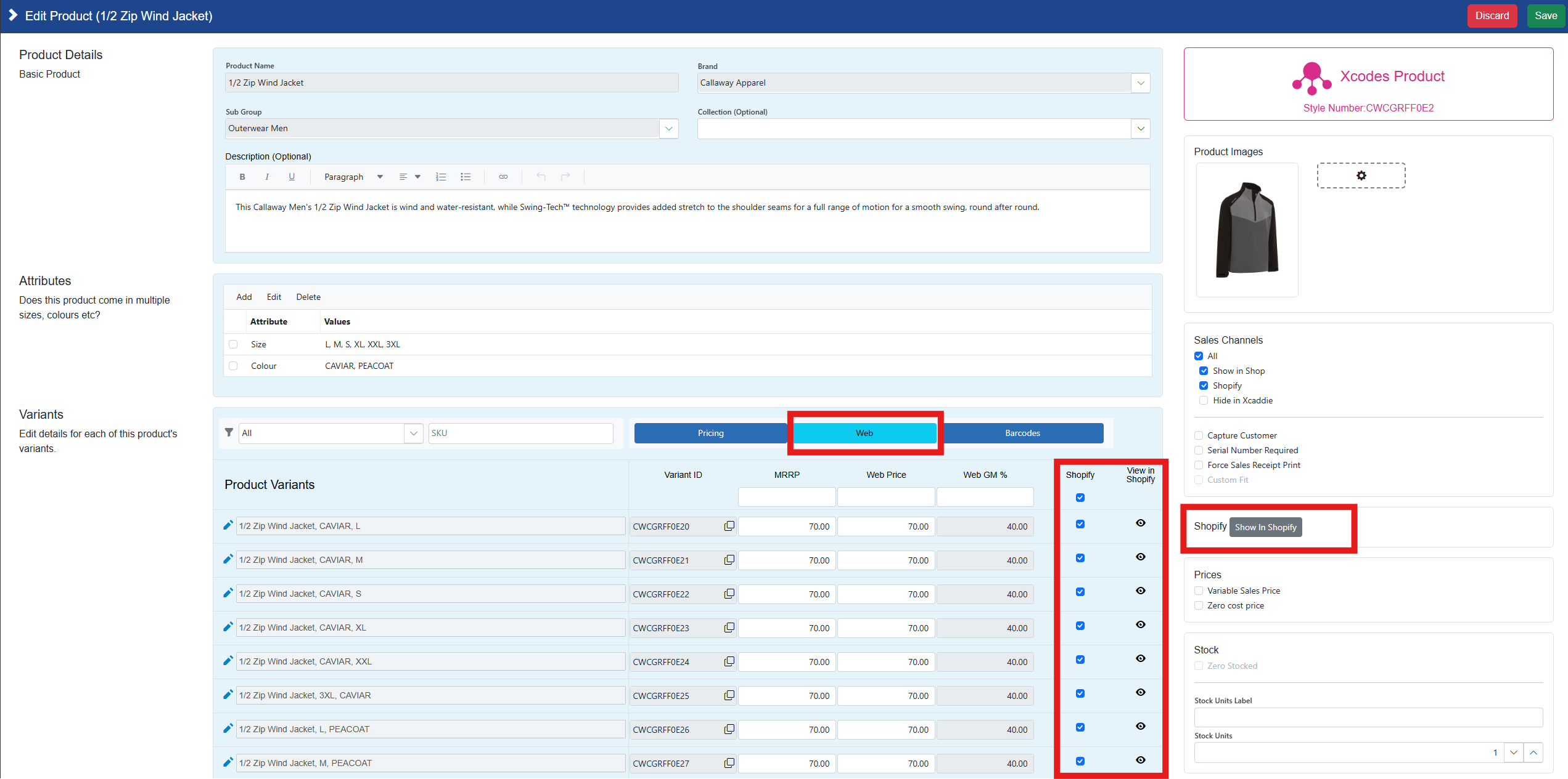 Once a product has been added to Shopify, you can quickly view it online from Xpos: